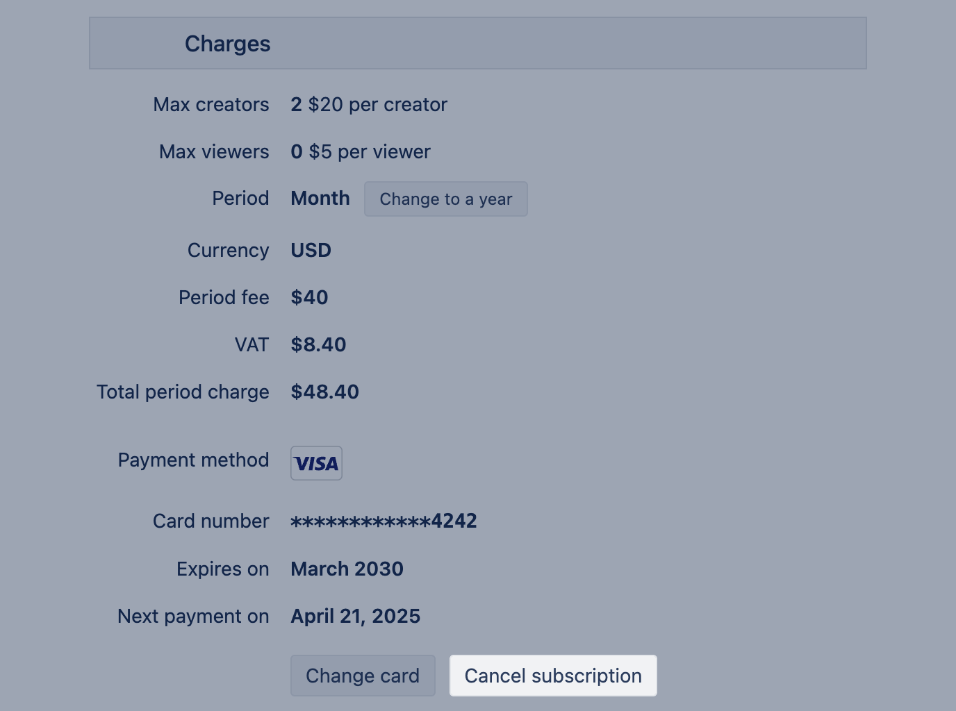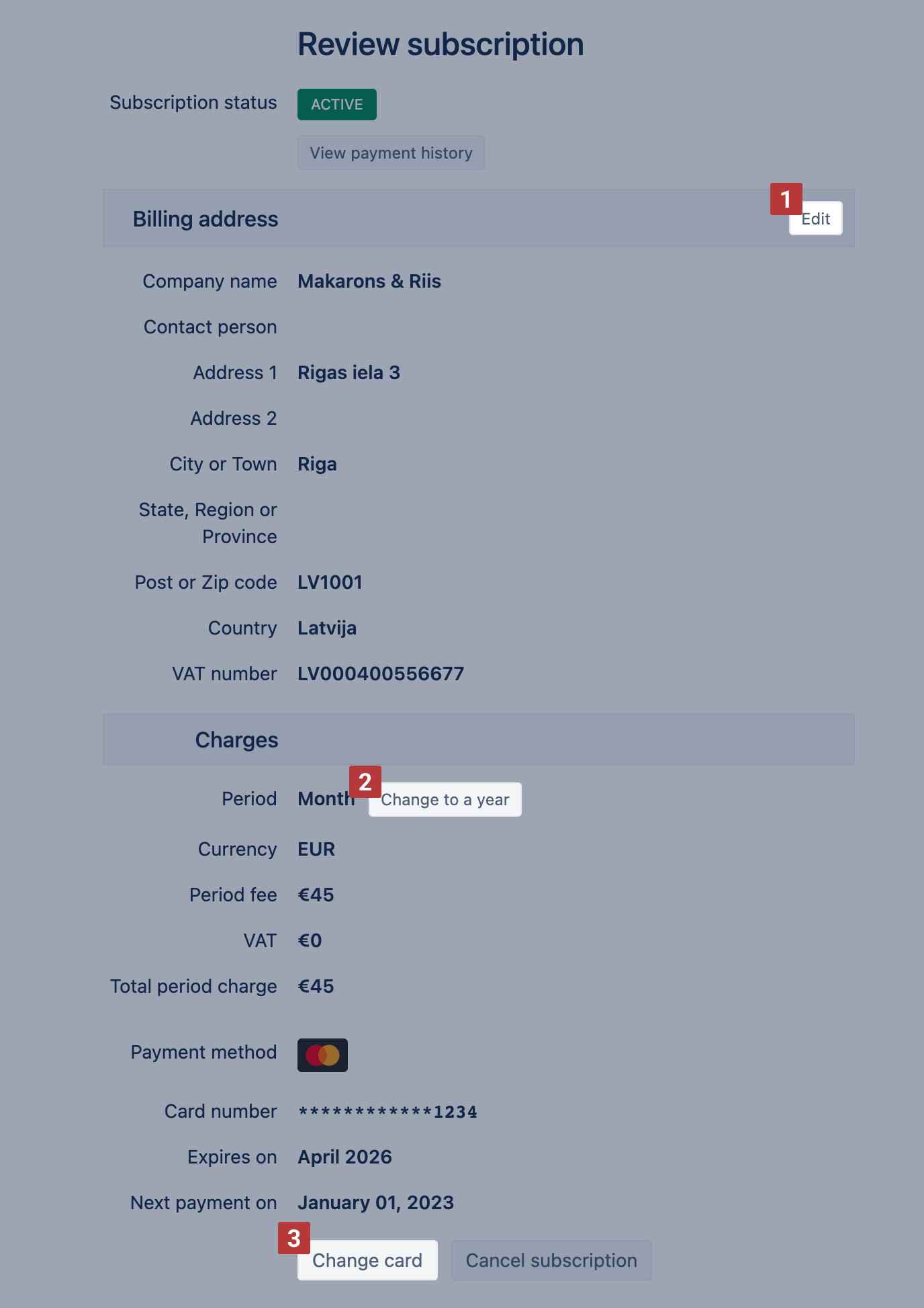 - Change payment period (yearly or monthly) [2]