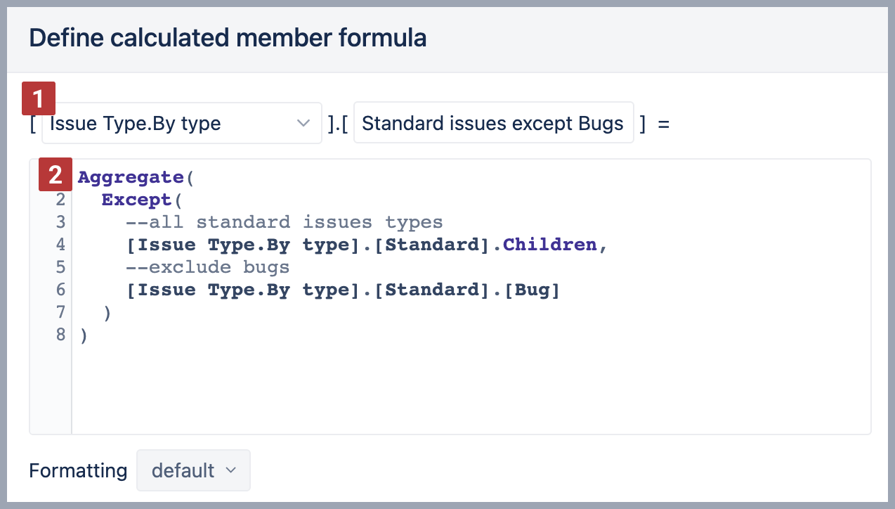 - Represent members in a specific order. For example, represent statuses as they would follow in a workflow: Backlog → Selected for Development → In Progress → Done. See chapter Group members.