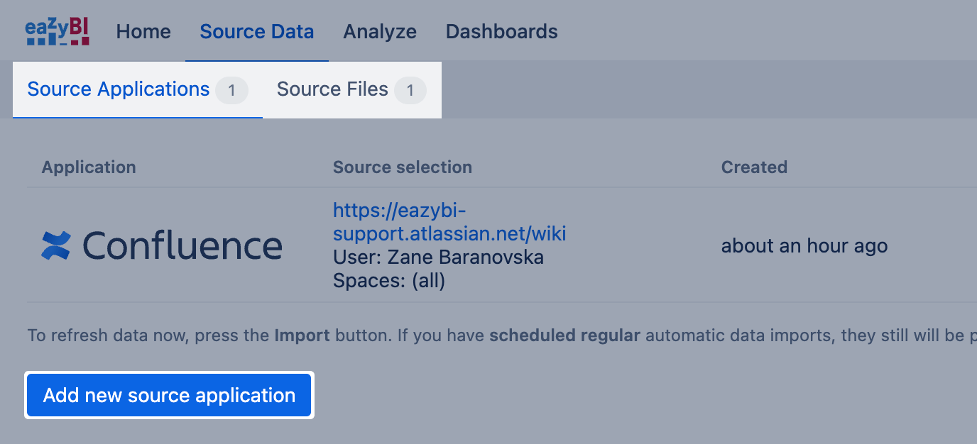 From Source Data tab select Add new source application or Source Files tab to upload new source data.