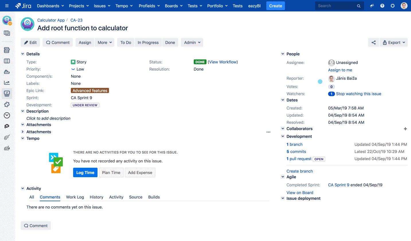 Bitbucket and Bamboo are closely integrated with Jira. We can detect and import PRs and builds that are related to Jira issues.