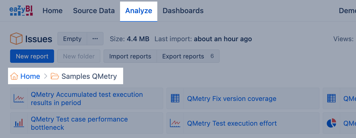 Data import from QMetry is available on eazyBI for Jira Cloud.