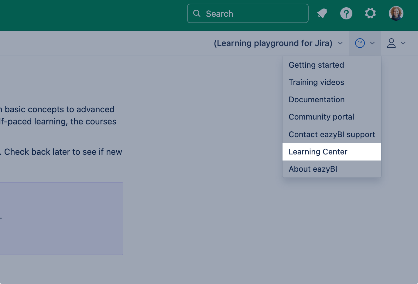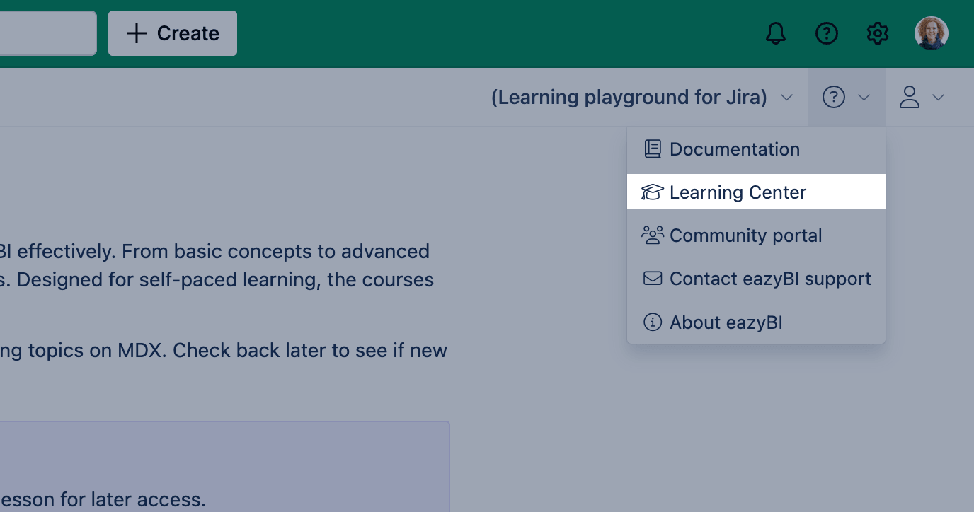 If you are not using eazyBI for Jira Cloud, you can sign up at eazybi.com/learning_center to access the Learning Center.