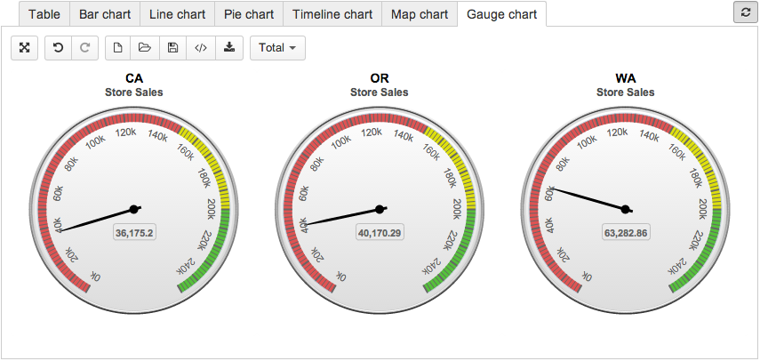 eazyBI already includes a gauge chart based on solid gauge chart from the Highcharts library. This is just an example of how to add a different gauge chart based on the angular gauge chart.