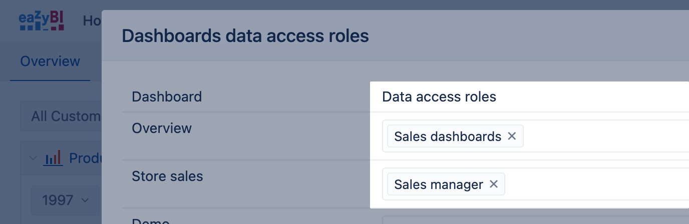 Data access roles are available on all eazyBI products; however, for eazyBI.com cloud product feature available starting from 5 creators or 20 viewers