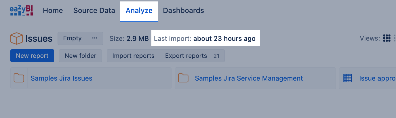 You can always check from the Analyze view when the data is successfully updated. eazyBI account admins can also see when data was updated last time from Source Data, and any eazyBI user can see it in the Dashboard.